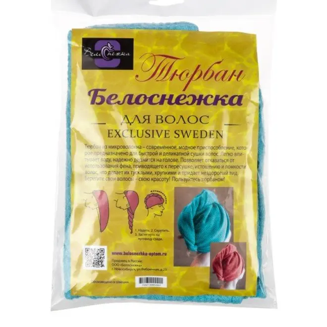 Тюрбан из микроволокна - современное, модное приспособление, которое предназначено для быстрой и деликатной сушки волос. Легко впитывает воду, надежно держится на голове.