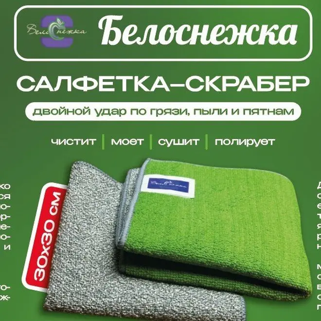 Двусторонний скрабер легко удаляет стойкие и въевшиеся загрязнения с любых поверхностей, не оставляя царапин, ворсинок и разводов. Всего несколько движений и любые поверхности кухни, ванной и комнаты радуют чистотой и сиянием.