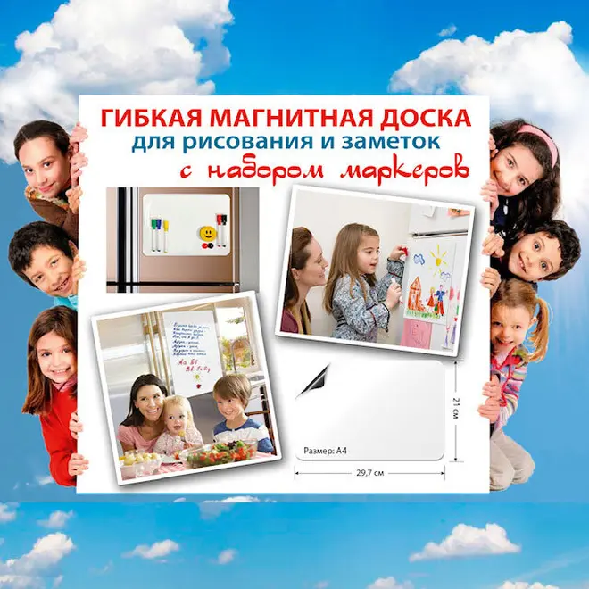 Гибкая магнитная доска для рисования и заметок с набором маркеров